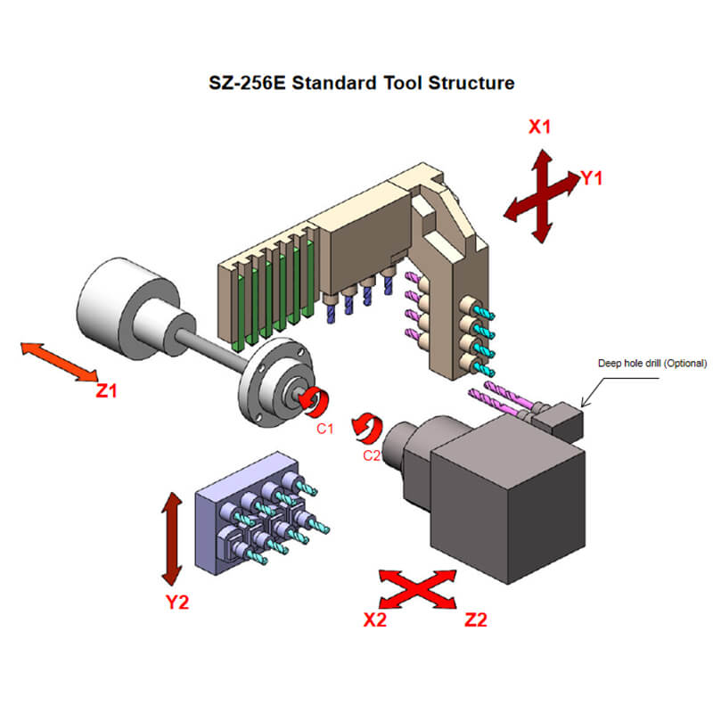| Model | SZ-206EN 6 axis, dual spindle | SZ-256EN 6 axis, dual spindle | |||